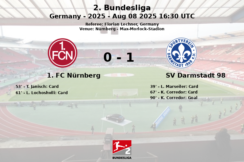 1. FC Nürnberg vs SV Darmstadt 98 Aug 08 2025 16:30 UTC