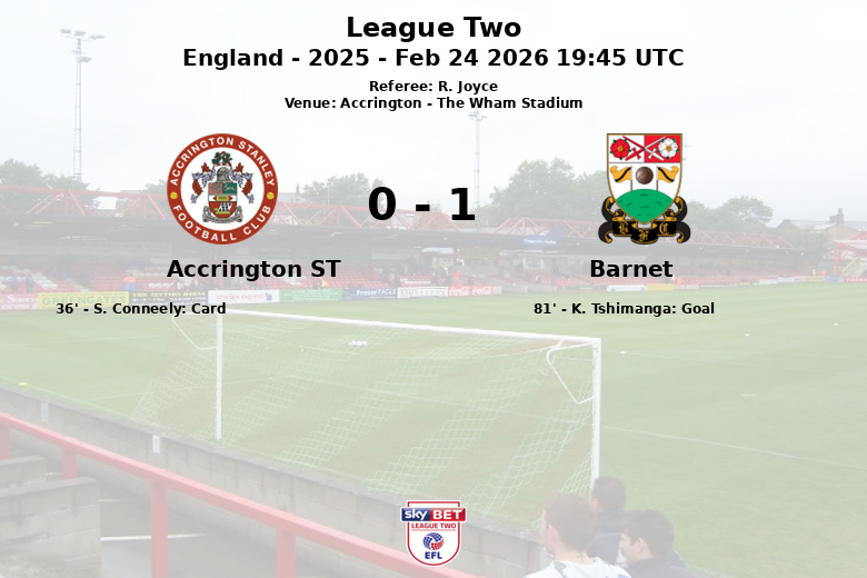Accrington ST vs Barnet Feb 24 2026 19:45 UTC