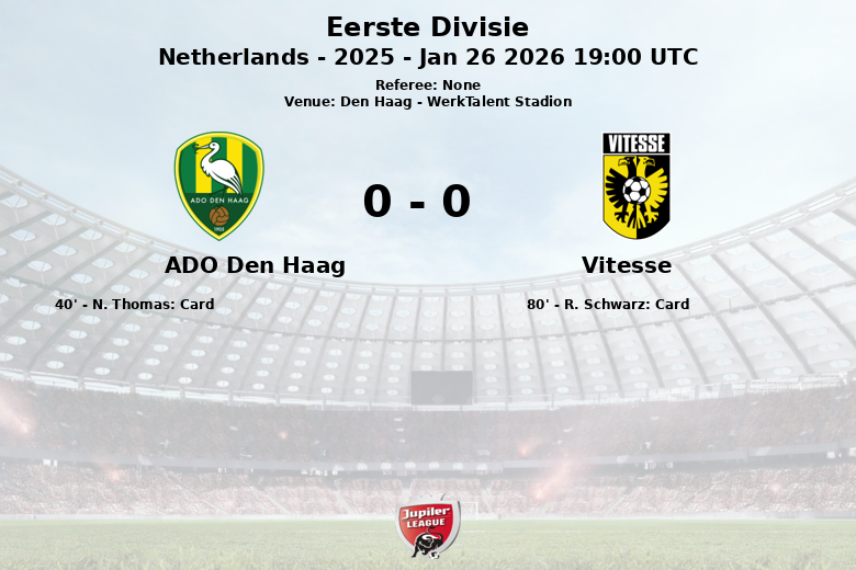 El Vitesse, por su parte, con un 36% de posesión, optó por un juego más directo, intentando aprovechar sus oportunidades de contraataque. Sus nueve disparos, con tres también dirigidos a puerta, reflejan una efectividad similar en cuanto a la puntería. El encuentro, válido por la jornada 3 de la temporada 2025 de la Eerste Divisie, se caracterizó por un juego disputado en el mediocampo, con un total de 27 faltas cometidas entre ambos equipos. El árbitro mostró tarjetas amarillas a N. Thomas del ADO Den Haag y a R. Schwarz del Vitesse, reflejando la intensidad del choque. A pesar de los esfuerzos de ambos conjuntos, el partido finalizó sin goles, dejando a ambos equipos con un sabor agridulce.