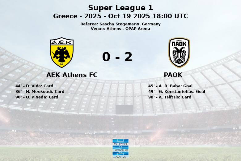 Atenas, Grecia – El PAOK se llevó una importante victoria en su visita al OPAP Arena, derrotando al AEK Atenas en un partido de la Super League 1. El encuentro, disputado el 19 de octubre de 2025, estuvo marcado por la intensidad y la polémica.