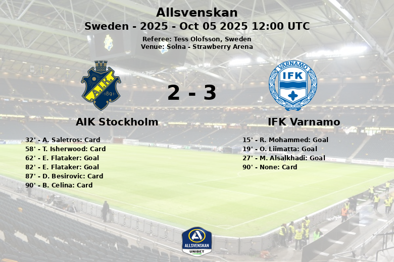 AIK Stockholm vs IFK Varnamo Oct 05 2025 12:00 UTC