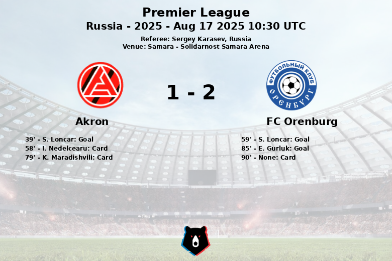 Cuando parecía que el empate era inamovible, E. Gurluk del FC Orenburg marcó un gol al minuto 85, con asistencia de D. Khotulev. El gol pareció sentenciar el partido a favor del equipo visitante, pero Akron no se rindió.