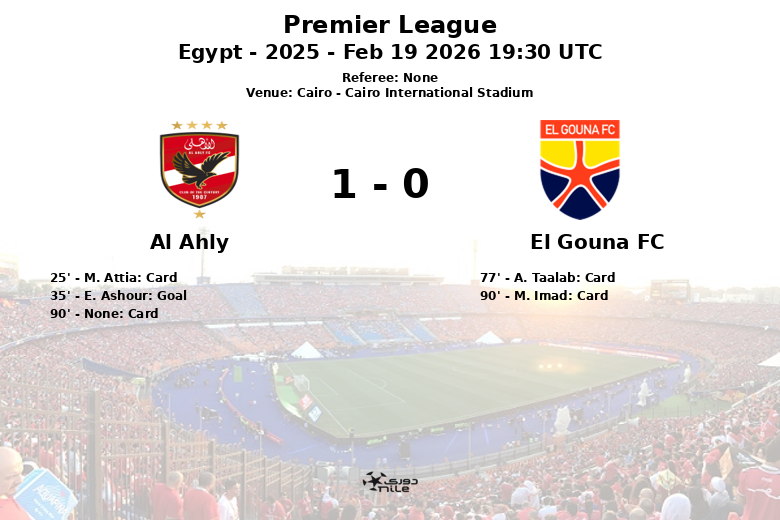El Cairo International Stadium fue testigo de la victoria del Al Ahly sobre El Gouna FC en un partido correspondiente a la jornada 18 de la Premier League egipcia. El único gol del encuentro fue obra de E. Ashour en el minuto 35, tras una asistencia de A. Bencharki.