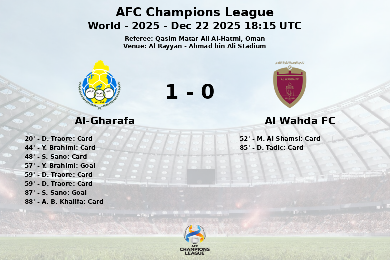 Al Rayyan, World – En un encuentro disputado en el Ahmad bin Ali Stadium, Al-Gharafa logró una sufrida victoria ante Al Wahda FC en la fase de grupos de la AFC Champions League. El partido, arbitrado por Qasim Matar Ali Al-Hatmi, estuvo marcado por la alta intensidad y la disciplina cuestionable de ambos equipos.