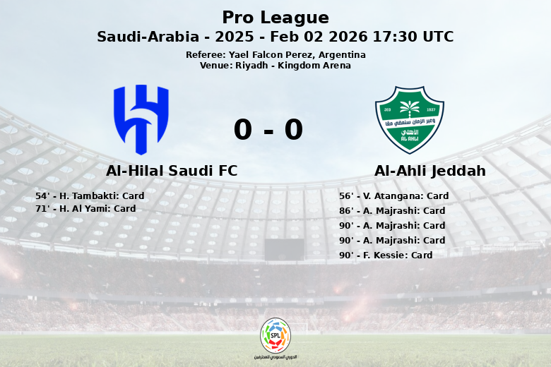 Riyadh, Arabia Saudita – En un encuentro disputado en el Kingdom Arena dentro de la Pro League, Al-Hilal Saudi FC se enfrentó a Al-Ahli Jeddah en un partido que, si bien no se reflejó en el marcador con goles, sí lo hizo en intensidad. Al-Hilal dominó la posesión con un 54%, intentando seis disparos, de los cuales dos fueron dirigidos a la portería. Sin embargo, la falta de precisión fue evidente, con dos tiros desviados. Obtuvieron tres saques de esquina.