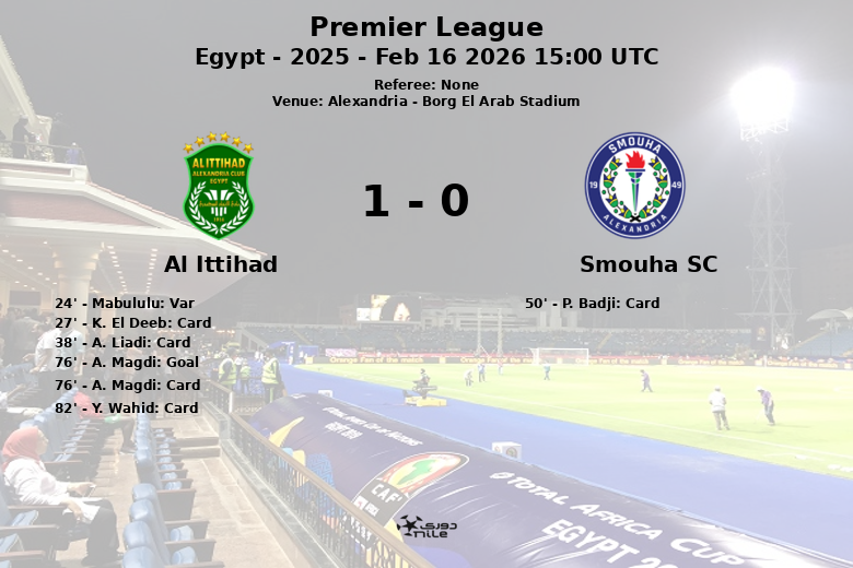 El partido estuvo marcado por la disciplina táctica y la intensidad en el mediocampo, reflejado en las 13 faltas cometidas por Al Ittihad y las 14 de Smouha SC. El árbitro se vio obligado a mostrar 4 tarjetas amarillas a jugadores de Al Ittihad (K. El Deeb, A. Liadi, A. Magdi y Y. Wahid) y una a P. Badji del Smouha SC. Un gol de Mabululu para Al Ittihad fue anulado por el VAR en el minuto 24. Finalmente, Al Ittihad se llevó los tres puntos en un encuentro donde la precisión en el momento clave marcó la diferencia.