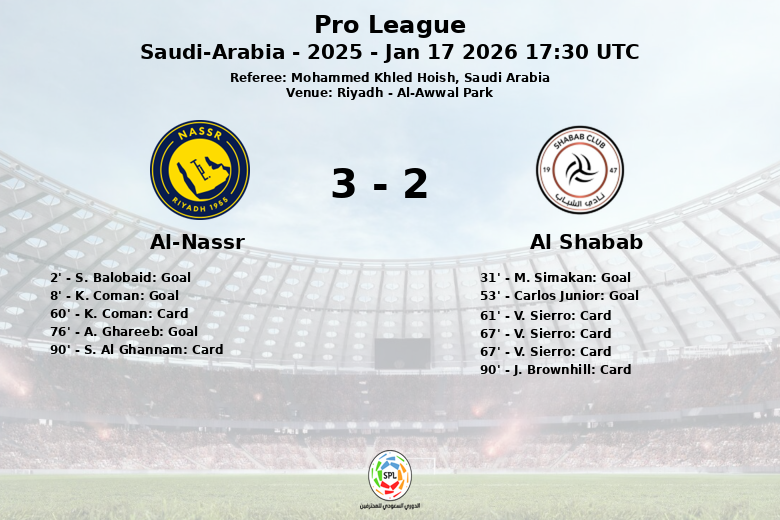 Riyadh, Arabia Saudita – El Al-Awwal Park fue testigo de un encuentro electrizante entre Al-Nassr y Al Shabab, correspondiente a la jornada 16 de la Pro League. El partido, disputado el 17 de enero de 2026, culminó con una victoria para el Al-Nassr con un marcador final de 3 a 2.