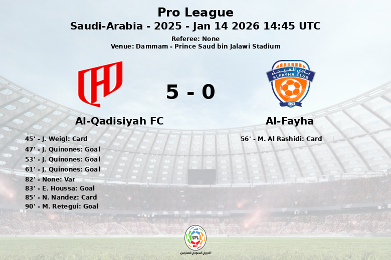 Al-Qadisiyah FC vs Al-Fayha Jan 14 2026 14:45 UTC