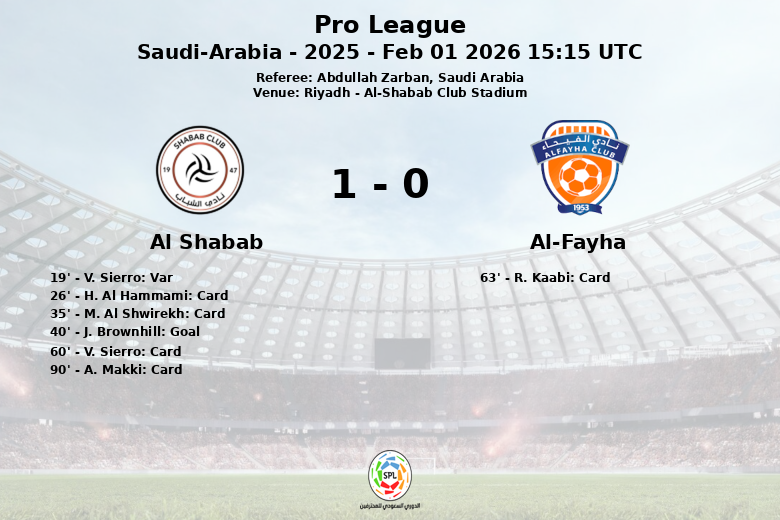 Riyadh, Arabia Saudita – En un partido correspondiente a la jornada 20 de la Pro League saudí, Al Shabab se impuso a Al-Fayha en el Al-Shabab Club Stadium. El encuentro, arbitrado por Abdullah Zarban, se caracterizó por la intensidad y el juego físico, reflejado en las cinco tarjetas amarillas mostradas a lo largo del partido.