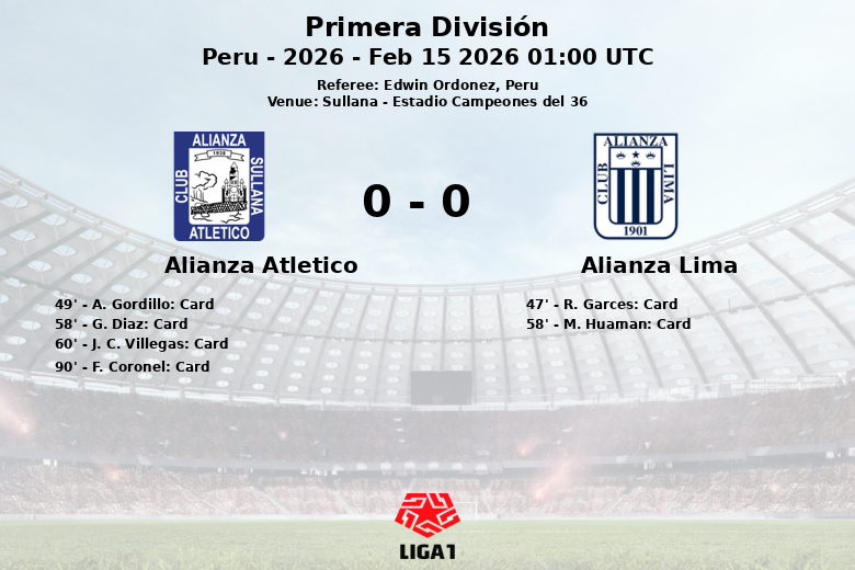 Sullana, Perú – Un partido cargado de tensión y tarjetas se vivió en el Estadio Campeones del 36, donde Alianza Lima y Alianza Atlético igualaron en un encuentro correspondiente a la tercera fecha de la Primera División. El árbitro Edwin Ordóñez tuvo una noche ocupada mostrando un total de seis tarjetas amarillas.