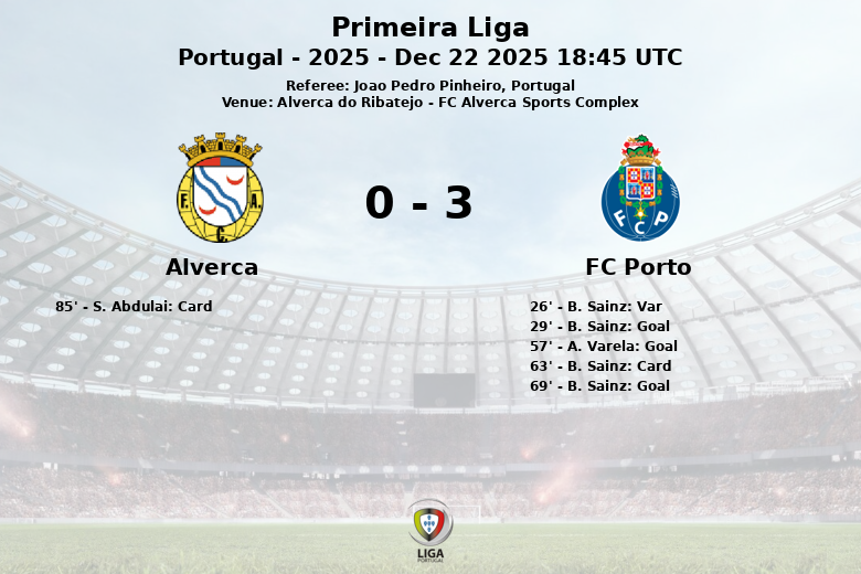 Alverca do Ribatejo, Portugal – En un encuentro disputado en el FC Alverca Sports Complex, el FC Porto se impuso con claridad al Alverca en un partido correspondiente a la jornada 15 de la Primeira Liga. El árbitro Joao Pedro Pinheiro dirigió el encuentro.