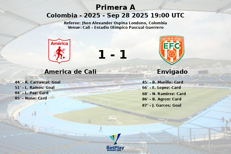 Cali vibró con la victoria del América sobre Envigado en un encuentro disputado en el Estadio Olímpico Pascual Guerrero. A pesar de un dominio claro en la posesión del balón (66%), el América tuvo que luchar para asegurar el triunfo.
