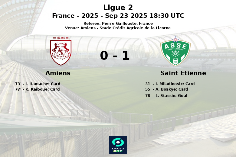 Amiens, Francia – En un encuentro correspondiente a la séptima jornada de la Ligue 2, el Saint Etienne se impuso como visitante ante el Amiens en el Stade Crédit Agricole de la Licorne. El partido, disputado el 23 de septiembre de 2025, fue dirigido por el árbitro Pierre Gaillouste.
