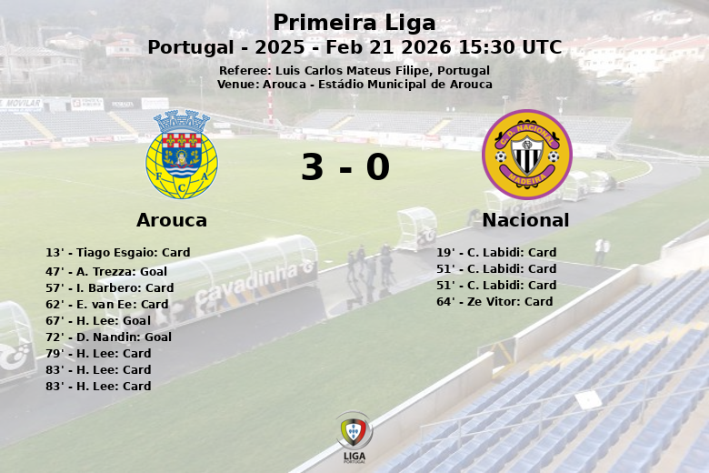 El Arouca aprovechó su superioridad numérica y H. Lee amplió la ventaja al minuto 67. D. Nandin selló la victoria para los locales al minuto 72, con asistencia de P. Gozalbez.