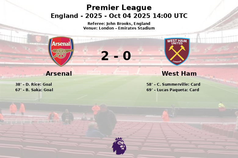 Declan Rice abrió el marcador para los Gunners en el minuto 38 con un gol que desató la euforia en las gradas. La presión constante del Arsenal se tradujo en un penal a favor en el minuto 67, que Bukayo Saka convirtió sin problemas para ampliar la ventaja.