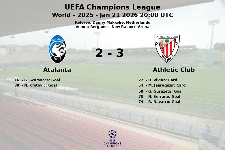 Atalanta vs Athletic Club Jan 21 2026 20:00 UTC