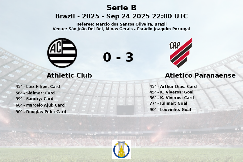 En un encuentro disputado en el Estádio Joaquim Portugal de São João Del Rei, Minas Gerais, el Atlético Paranaense se impuso con claridad al Athletic Club en un partido correspondiente a la Serie B brasileña. El dominio del balón favoreció al Athletic Club con un 58% de posesión, pero no se tradujo en un juego efectivo. El Atlético Paranaense, con un 42% de posesión, demostró ser más eficaz de cara al gol.