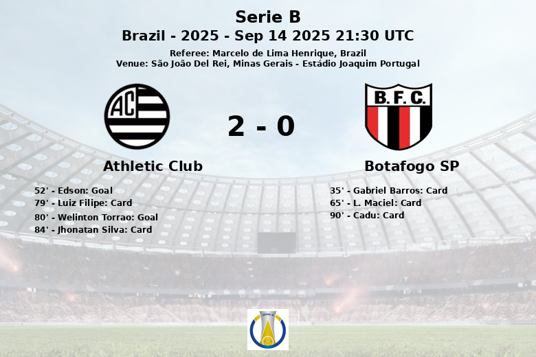 El Athletic Club, dominando la posesión con un 53%, logró abrir el marcador en el minuto 52 gracias a un autogol de Edson del Botafogo SP. A pesar de los intentos del Botafogo SP, que contó con un 47% de posesión, por igualar el marcador, el Athletic Club supo defender su ventaja y ampliarla al minuto 80 con un gol de Welinton Torrao, asistido por R. Tavares.
