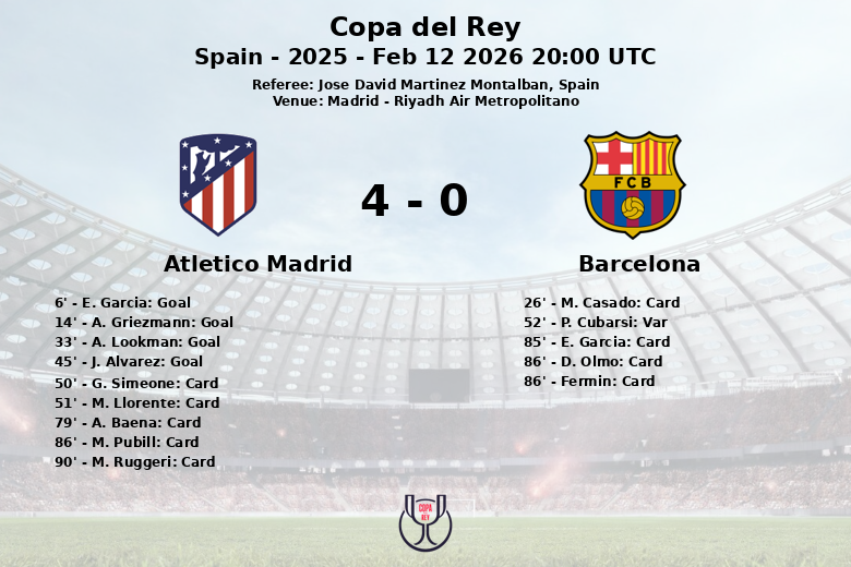 Madrid, España – El Atlético de Madrid brindó una exhibición de contundencia y eficacia frente a su afición en el Riyadh Air Metropolitano, derrotando al Barcelona en las semifinales de la Copa del Rey. El partido, disputado el 12 de febrero de 2026, culminó con una clara victoria del equipo local, evidenciada por un juego agresivo y oportunista.