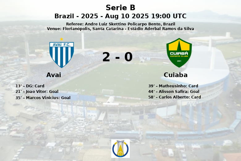 Florianópolis, Santa Catarina – En un emocionante encuentro disputado en el Estádio Aderbal Ramos da Silva, el Avaí se impuso al Cuiabá con un marcador de 2 a 1, en un partido correspondiente a la jornada 21 de la Serie B brasileña. El equipo local aprovechó la efectividad frente al arco, pese a tener menor posesión del balón.
