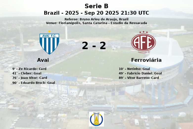 En la segunda mitad, Fabricio Daniel volvió a poner en ventaja a la Ferroviária al minuto 49. Cuando parecía que la visita se llevaría la victoria, Eduardo Brock del Avaí apareció al minuto 90 para marcar un gol salvador, con asistencia de Guilherme Santos, sellando el empate final.