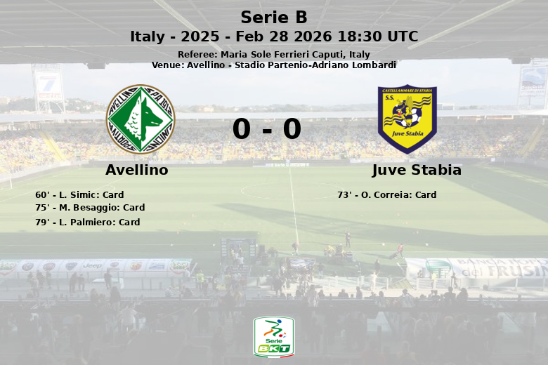 El partido se caracterizó por la intensidad en el mediocampo, reflejada en las 21 faltas cometidas por Avellino, que derivaron en tres tarjetas amarillas para Card, Besaggio y Palmiero. Juve Stabia, por su parte, cometió 17 faltas y vio una tarjeta amarilla para Correia. Avellino buscó generar peligro a través de jugadas de estrategia, obteniendo 6 tiros de esquina, mientras que Juve Stabia sólo logró 2. A pesar del dominio de posesión de la Juve Stabia, sólo consiguieron 5 tiros, con 2 a puerta y 2 fuera. El encuentro, arbitrado por Maria Sole Ferrieri Caputi, finalizó sin goles.