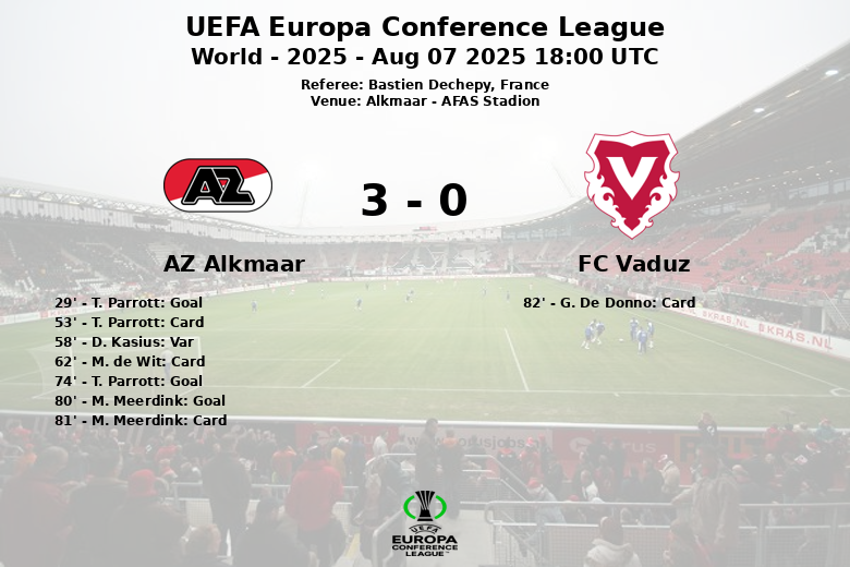 AZ Alkmaar vs FC Vaduz Aug 07 2025 18:00 UTC