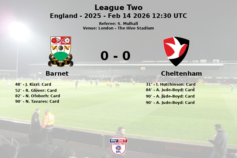 Barnet vs Cheltenham Feb 14 2026 12:30 UTC