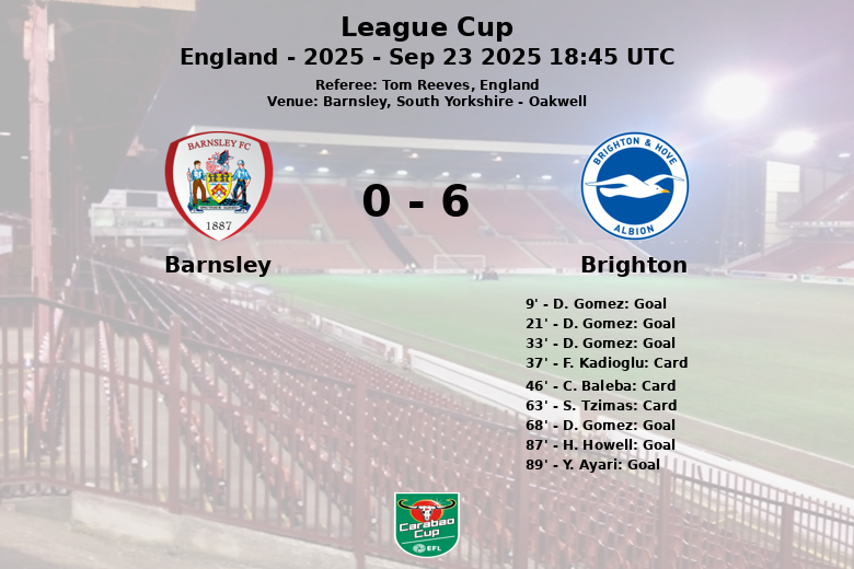 Barnsley, South Yorkshire – El Brighton & Hove Albion demostró su poderío ofensivo en Oakwell, aplastando al Barnsley en un partido correspondiente a la tercera ronda de la League Cup. El encuentro, disputado el 23 de septiembre de 2025, terminó con una contundente victoria para los visitantes.