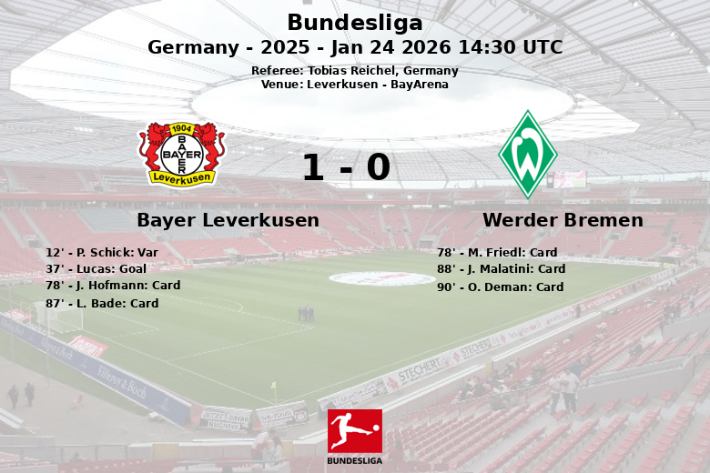 Leverkusen, Alemania – En un encuentro disputado en el BayArena, el Bayer Leverkusen se impuso al Werder Bremen en un partido correspondiente a la jornada 19 de la Bundesliga. El partido, celebrado bajo la atenta mirada del árbitro Tobias Reichel, estuvo marcado por la intensidad y la disputa en el mediocampo.