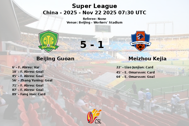 Beijing Guoan vs Meizhou Kejia Nov 22 2025 07:30 UTC
