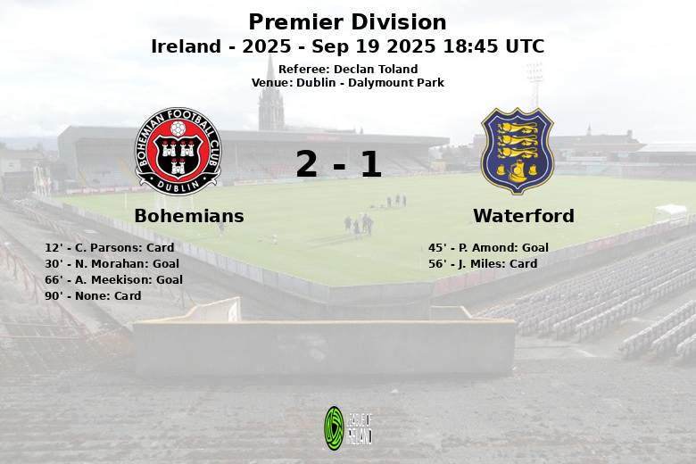 El primer gol llegó al minuto 30, cuando N. Morahan, asistido por A. Meekison, puso en ventaja a Bohemians. La alegría local se vio atenuada justo antes del descanso, cuando P. Amond igualó el marcador para Waterford al minuto 45.