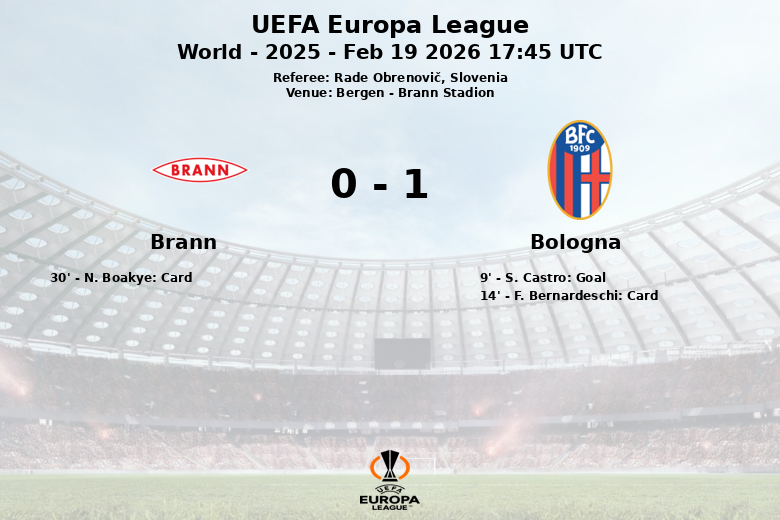 Bergen fue testigo de un encuentro disputado entre el Brann y el Bologna en el Brann Stadion, correspondiente a la UEFA Europa League. A pesar de dominar la posesión del balón con un 66%, el Brann no pudo convertir su superioridad en goles. El Bologna, por su parte, aprovechó sus oportunidades y se llevó la victoria gracias a un gol tempranero de S. Castro en el minuto 9, con asistencia de N. Cambiaghi. El partido estuvo marcado por la intensidad, con un total de 33 faltas cometidas por ambos equipos y dos tarjetas amarillas mostradas a F. Bernardeschi (Bologna) y N. Boakye (Brann). Aunque el Brann intentó reaccionar con 4 tiros, solo 2 encontraron la portería, mientras que el Bologna, con menos posesión (34%), fue más efectivo al realizar 13 tiros, 5 de ellos a puerta. El Bologna se lleva una importante victoria de Bergen en este partido de ida de la ronda de 32.