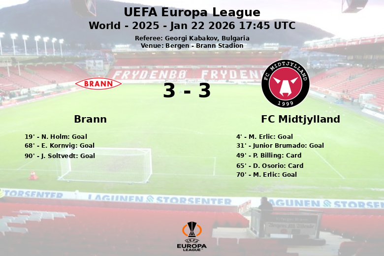 Bergen fue testigo de un vibrante encuentro de la Europa League entre el Brann y el FC Midtjylland, que terminó con un marcador de 4 a 4. El partido, disputado en el Brann Stadion, estuvo lleno de alternativas y emociones desde el pitido inicial.
