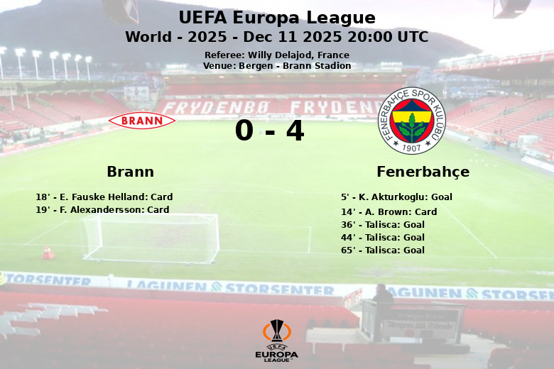 El partido comenzó con un gol tempranero de K. Akturkoglu al minuto 5, asistido por D. Nene, dando una ventaja inicial al Fenerbahçe. Sin embargo, el juego se vio afectado por una tarjeta roja mostrada a E. Fauske Helland del Brann al minuto 18, dejando a su equipo en desventaja numérica. Previamente, A. Brown del Fenerbahçe había recibido una tarjeta amarilla al minuto 14.