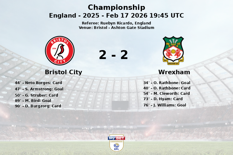 Home Matches Bristol City vs Wrexham Feb 17 2026 19:45 UTC