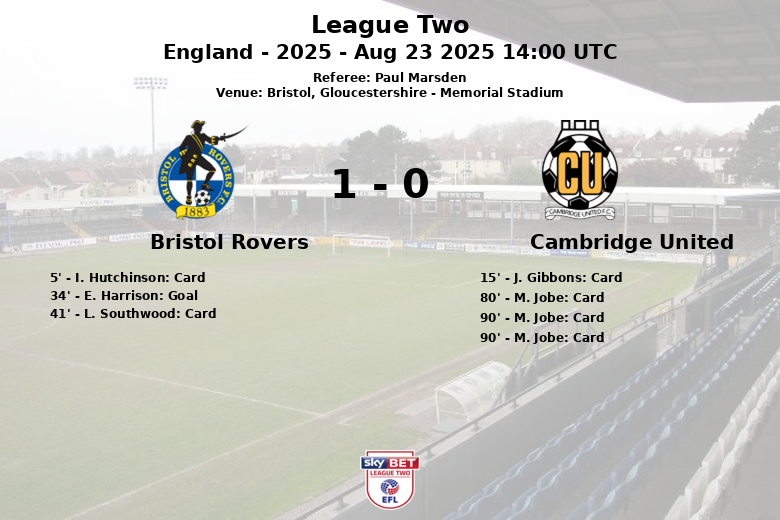 Bristol Rovers vs Cambridge United Aug 23 2025 14:00 UTC