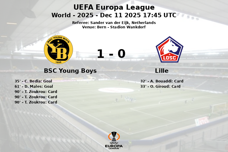 Berna, Suiza – El Stadion Wankdorf fue testigo de un encuentro agitado entre el BSC Young Boys y el Lille, correspondiente a la última jornada de la fase de grupos de la UEFA Europa League. El equipo local se llevó la victoria en un partido marcado por las expulsiones y un penalti fallado.