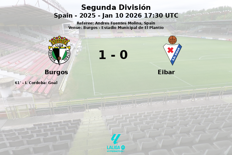Burgos, España – En un encuentro vibrante y disputado en el Estadio Municipal de El Plantío, el Burgos C.F. logró imponerse al Eibar con un marcador de uno a cero en la jornada 21 de la Segunda División. El partido, arbitrado por Andres Fuentes Molina, se caracterizó por la intensidad y la paridad en la posesión del balón, con un 52% para el Burgos y un 48% para el Eibar.