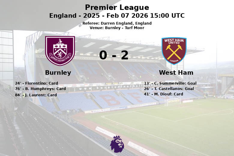 C. Summerville abrió el marcador para el West Ham en el minuto 13, asistido por M. Fernandes. T. Castellanos amplió la ventaja en el minuto 26, tras un pase de M. Diouf. El Burnley, aunque intentó reaccionar, no logró concretar sus numerosas llegadas al área rival.