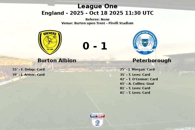 Burton upon Trent – En un encuentro disputado en el Pirelli Stadium, correspondiente a la jornada 13 de la League One, el Peterborough se impuso al Burton Albion con un marcador de 1-0. A pesar de dominar la posesión del balón con un 58%, el Burton Albion no logró materializar su superioridad en goles. Los locales intentaron con 10 disparos, de los cuales 4 fueron a puerta, pero no encontraron el camino del gol.