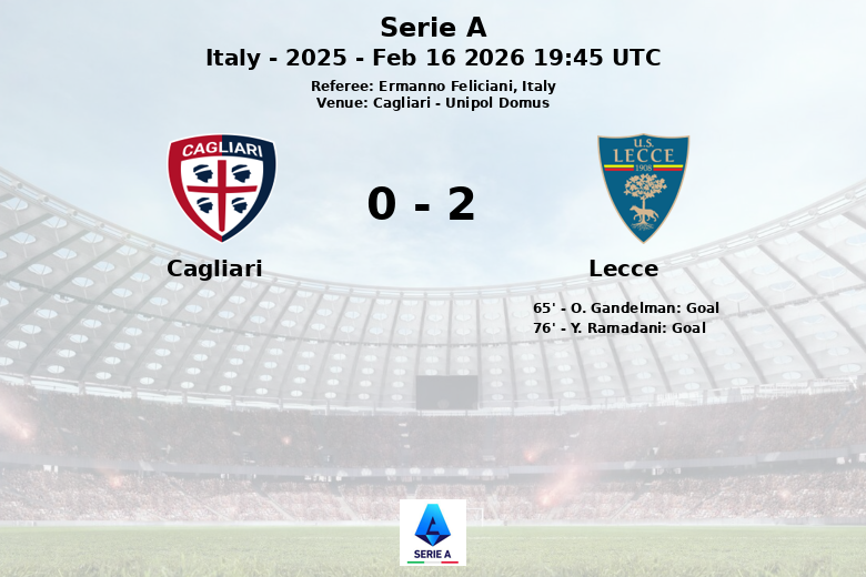 El primer gol del partido llegó al minuto 65, cuando O. Gandelman, asistido por R. Sottil, abrió el marcador para el Lecce. El segundo tanto, que sentenció el partido, fue obra de Y. Ramadani al minuto 76, con asistencia de L. Coulibaly.