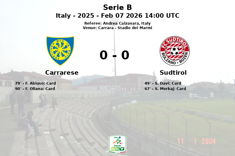 El partido se caracterizó por una alta intensidad, reflejada en las numerosas faltas cometidas por ambos equipos. El Sudtirol acumuló 16 faltas, lo que derivó en dos tarjetas amarillas para S. Davi y S. Merkaj. El Carrarese cometió menos faltas, un total de 5, y vio a F. Oliana y F. Abiuso amonestado con una tarjeta amarilla. El encuentro, arbitrado por Andrea Calzavara, transcurrió sin expulsiones.