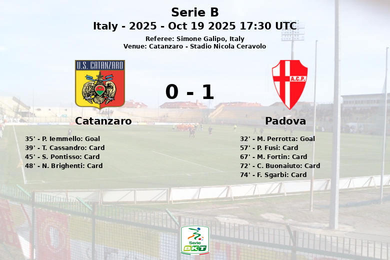 El partido cobró vida en el minuto 32 cuando M. Perrotta, asistido por A. Barreca, adelantó a Padova. Sin embargo, Catanzaro respondió rápidamente en el minuto 35 con un gol de P. Iemmello tras fallar inicialmente un penalti, manteniendo la tensión en el marcador.