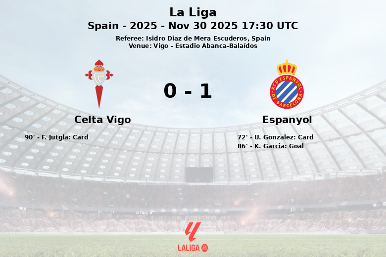 Celta Vigo vs Espanyol Nov 30 2025 17:30 UTC