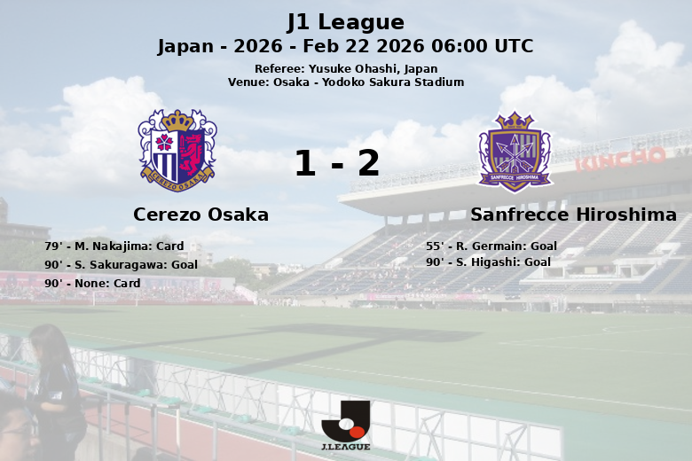 El Sanfrecce Hiroshima se adelantó en el minuto 55 gracias a un gol de R. Germain, que capitalizó una jugada ofensiva. El Cerezo Osaka, con una posesión ligeramente superior del 52%, luchó por igualar el marcador, pero le costó concretar sus ocasiones. De hecho, solo logró un remate a puerta de sus ocho intentos.
