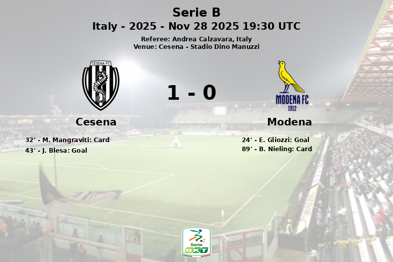 Cesena vs Modena Nov 28 2025 19:30 UTC