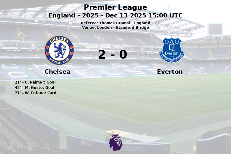 Cole Palmer abrió el marcador para el Chelsea en el minuto 21, tras una asistencia de Malo Gusto, encarrilando el partido para los locales. Malo Gusto amplió la ventaja justo antes del descanso, en el minuto 45, con un gol asistido por Pedro Neto, dejando al Everton con una tarea cuesta arriba en la segunda mitad.