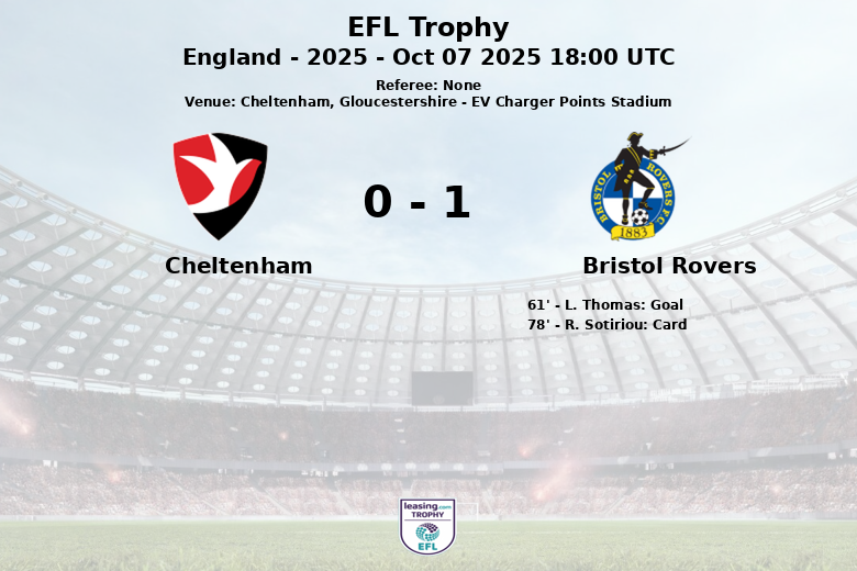 Cheltenham, Gloucestershire – En un partido disputado en el EV Charger Points Stadium, Bristol Rovers se impuso a Cheltenham Town en la segunda ronda del Southern Group del EFL Trophy. Un gol de L. Thomas en el minuto 61, asistido por R. Sotiriou, fue suficiente para asegurar la victoria para los Rovers.