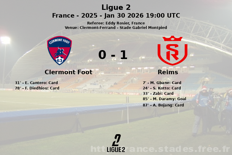 Clermont-Ferrand, Francia – Un partido cargado de tensión y marcadas interrupciones en el Stade Gabriel Montpied concluyó con una victoria agónica del Reims sobre el Clermont Foot. El encuentro, correspondiente a la jornada 21 de la Ligue 2, estuvo signado por las numerosas tarjetas, incluyendo dos expulsiones, una por bando.